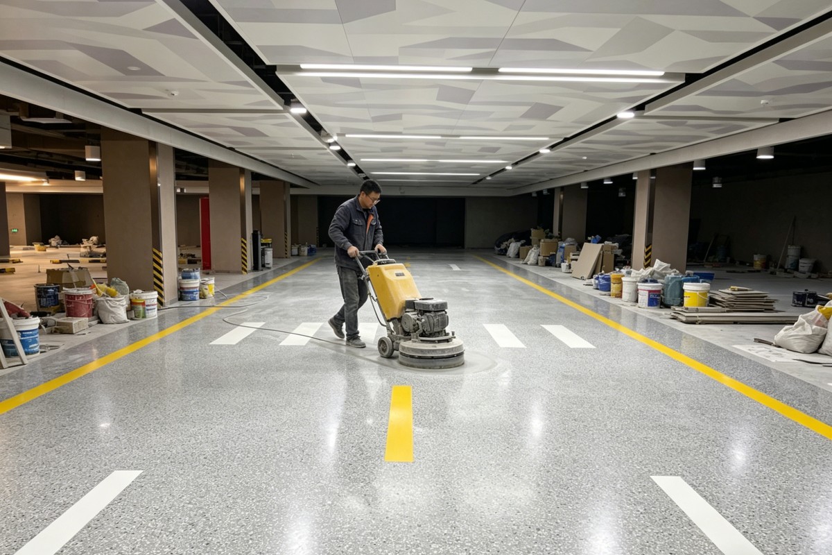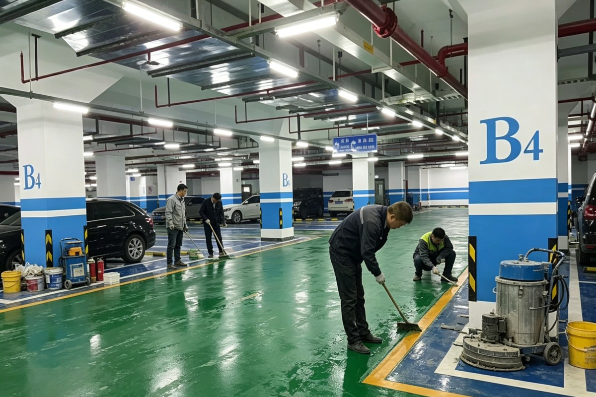 红河金平阿得博乡车库停车场环氧地坪施工厂家